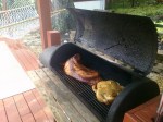 So, today as we finish some yard work and go to church the Brisket (and some “JoJo” chicken, I’ll explain later) will be on my cranky, finicky, New Braunfels smoker. Now I am of the opinion that you can’t really smoke meat on these high-powered, one touch, gas grilles. You really need a hard wood like oak or mesquite to get the right amount of smoke and flavor.