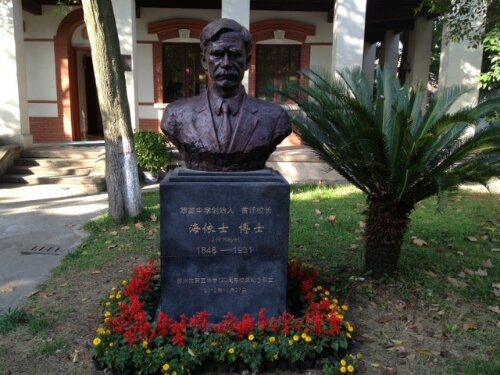 Meeting Mr. Shen Zhong Principal and Mrs. “Sophie” Wang You, the English teacher at No. 5 Middle School was quite the providential encounter. Their school is trying to look back further into their founding history and why they have this large bell that was manufactured in Baltimore, MA in 1895 by the Henry McShane Bell Co. And who are their first 2 Head masters Dr. R.N. Hayes and Ralph White. Apparently they were both sent by the American Presbyterian denomination to establish a school in Sozhuo. The school was originally named the Cuiying Academy. The No. 5 Middle school has an extensive history and maintains a school museum but they have very little information of their founder and his purpose in beginning the school.